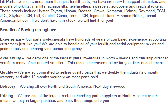 For your entire fleet of forklifts, we provide the best deals on all our parts. If you are interested in receiving a quote for our attachments or parts, give us a phone call now at: